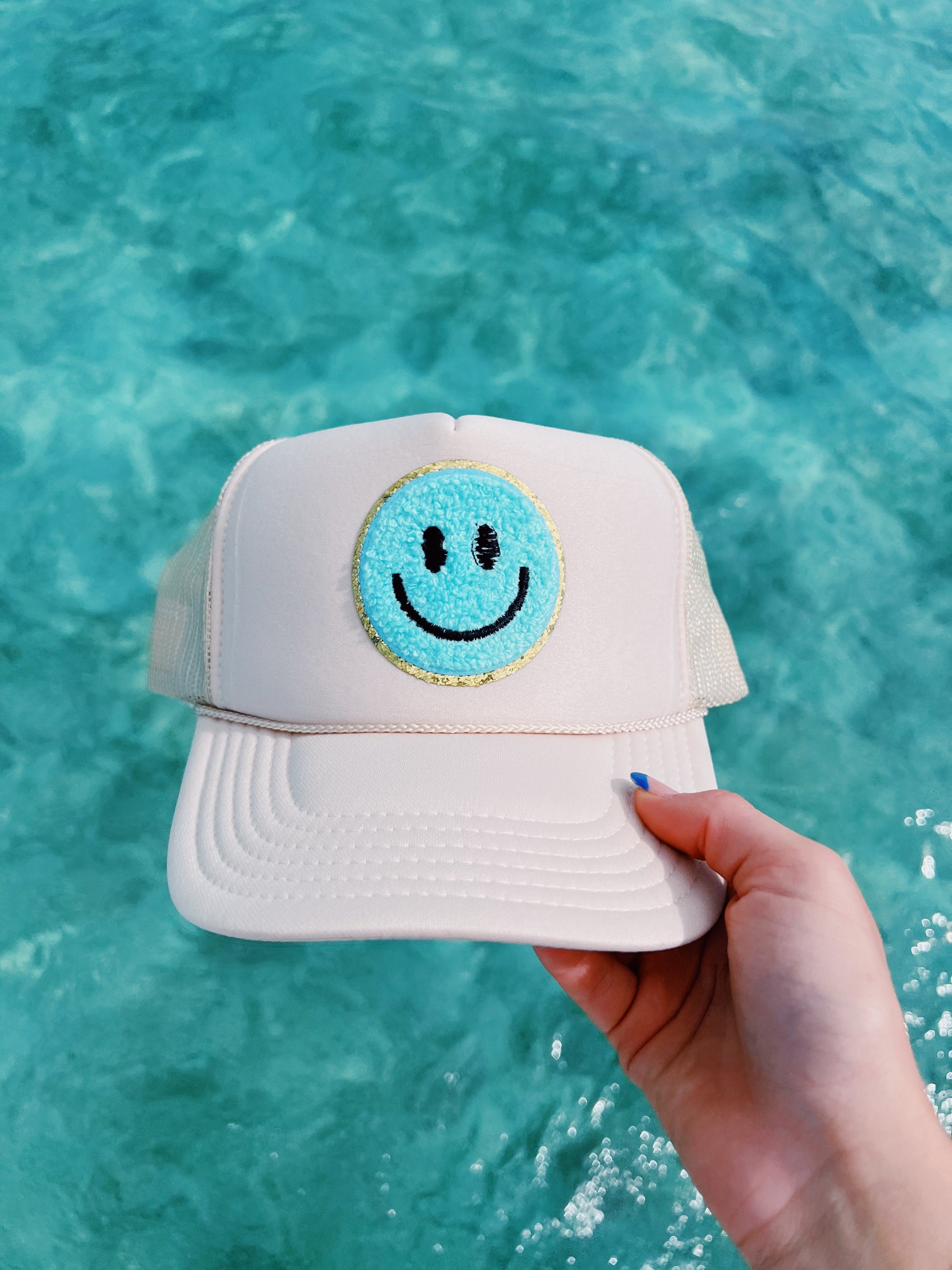 TAN TRUCKER WITH BLUE SMILEY ☻